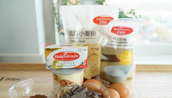 低筋面粉/100、細砂糖/100、雞蛋/3個、黃油/110、可可粉/5、黑巧克力/150(這裡要提示的是:如果不喜歡吃太甜的話,盡量選擇低甜度的巧克力)、核桃仁/40