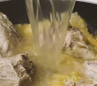 5.加入排骨,酸菜湯,煮肉湯,生抽,料酒,鹽,小火燉20分鐘即可。