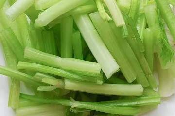 3.芹菜去除根部和葉子,清洗幹凈之後,切成2cm-4cm的小段備用。