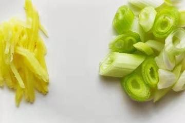 4.蔥洗凈切成蔥花,薑去皮切成薑末或者薑絲備用。