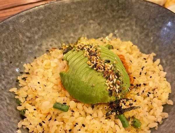 牛油果拌飯真的會有人相信這玩意兒會好吃嗎?這看上去就是妥妥的黑暗料理啊,雖然我也喜歡吃牛油果,不過介於是和其它食材的搭配。拌飯還是無法想象。結果這個拌飯還是給瞭我驚喜,新鮮的醬汁配上牛油果,整體感覺就也太奇妙瞭,口感清新而不膩,米飯顆粒飽滿,還有松軟的肉松,難怪是店內招牌,第一推薦。