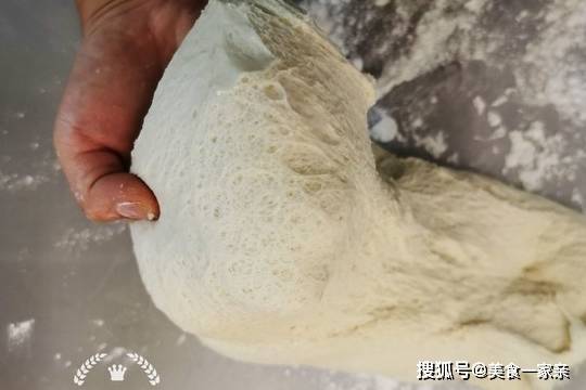 9.醒發好的面團滿滿的蜂窩,揉面排氣搓成長條,切成均勻大小的劑子