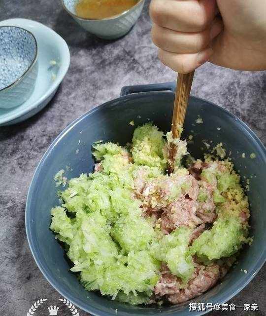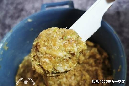 5.豬肉裡加入蔥末,薑末攪拌均勻。