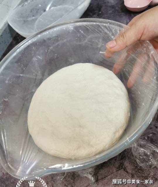 3.揉至豬油全部被吸收後,蓋保鮮膜密封醒發至兩倍大,約1.5小時。