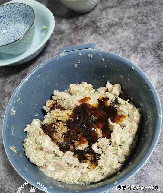 6.加入鹽,五香粉,味精,生抽,老抽,耗油,香油攪拌均勻。