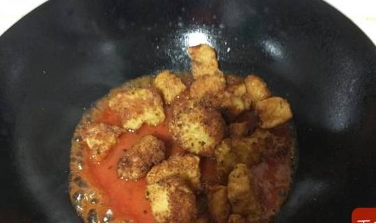 10.讓魚塊上均勻的粘上調制的番茄汁液