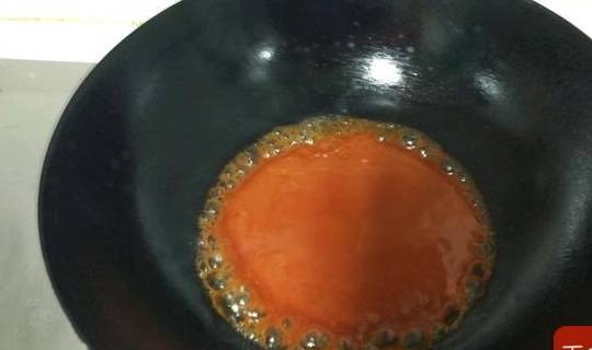 8.鍋裡下蔥薑蒜末爆鍋,下入調制好的番茄汁翻炒