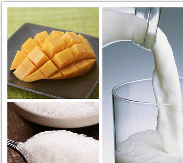 芒果1個(350克)、牛奶半杯、白砂糖1勺