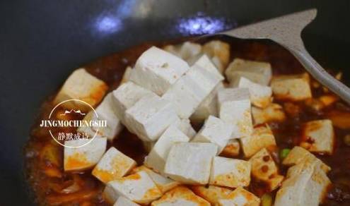 8、把焯過水的豆腐放進去,小心的攪拌開。
