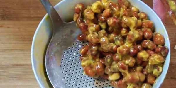 3,一定要等花生米定型後再進行翻動
