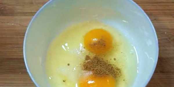 2,打兩個雞蛋放入鹽白糖十三香調味,攪拌均勻,喜歡吃辣的朋友可以放點辣椒粉