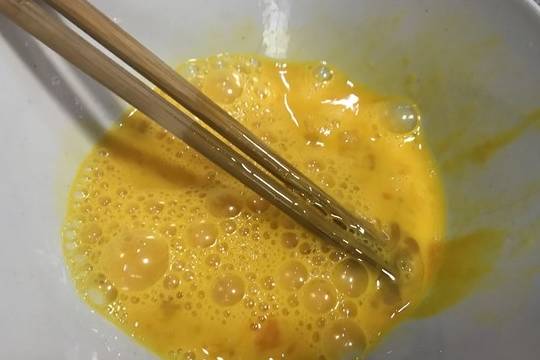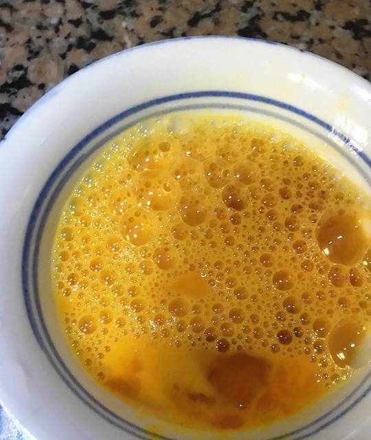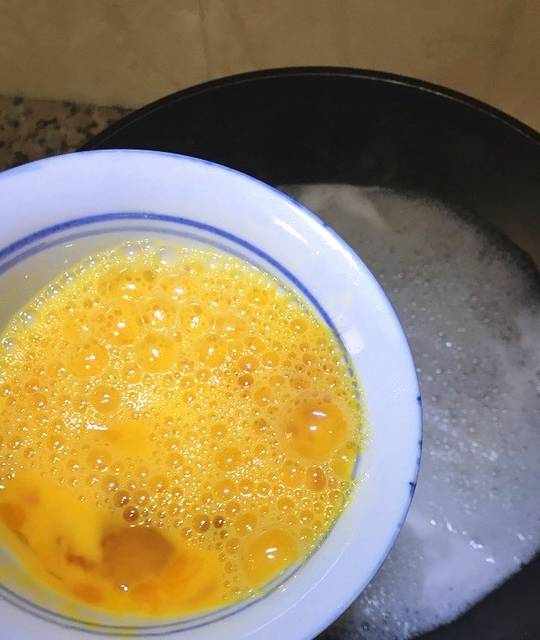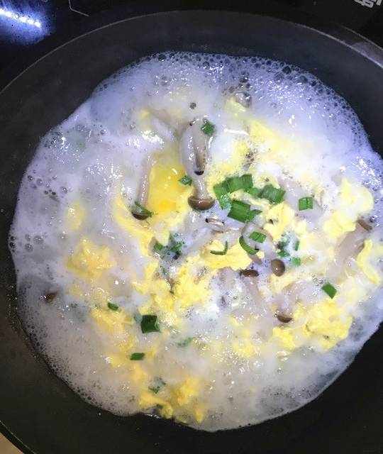 6.將雞蛋打散待然後加入菌菇適量煮一分鐘用