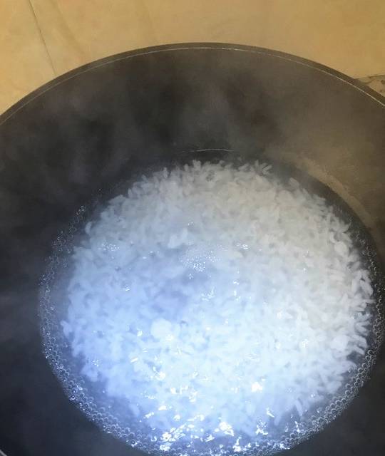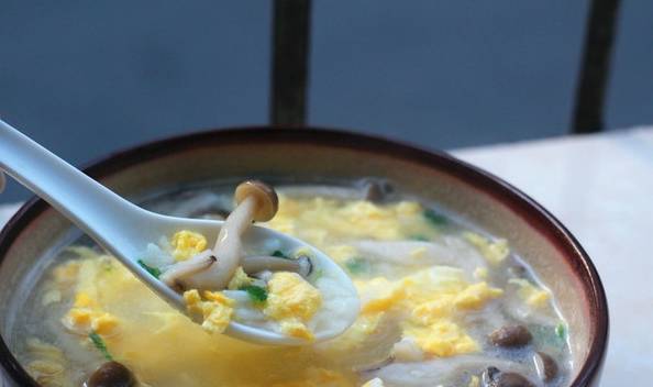 菌菇100克、雞蛋100克、米飯150克、精鹽適量、小蔥適量