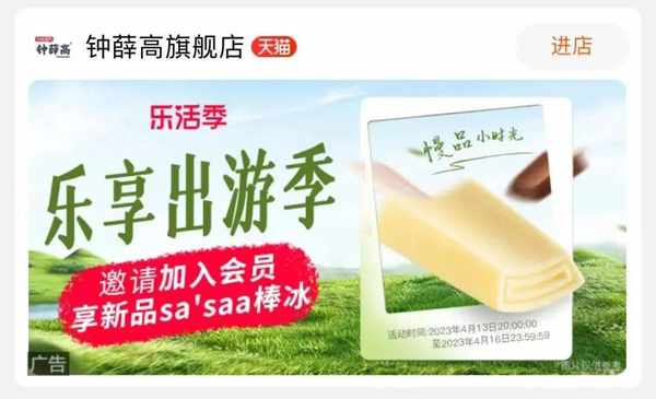 目前,“Sa’Saa”的主要銷售渠道在線下,線上僅作為贈品相送。伯虎財經14日在鐘薛高天貓旗艦店看到,“邀請好友入會打榜,便有機會贏鐘薛高‘Sa’Saa 棒冰’”。