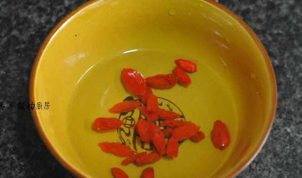 6.枸杞用清水泡軟,一兩分鐘即可。
