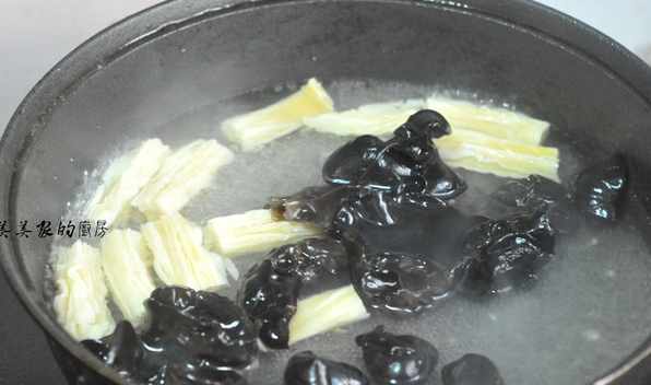 4.將黑木耳也倒入鍋中,燙半分鐘即可。