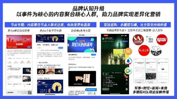 同時,品牌也能夠借勢全域生態的內容能力,聚合節點人群關註度,打透不同圈層,實現差異化的品牌營銷。