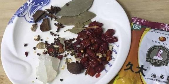 涼白開或礦泉水2500毫升,泡菜鹽250克,白酒50毫升,土冰糖150克、花椒10克、幹辣椒30克,八角8克、山奈8克、桂皮8克、草果一個去籽、香葉3克、大蒜10克(紫皮獨蒜最好)