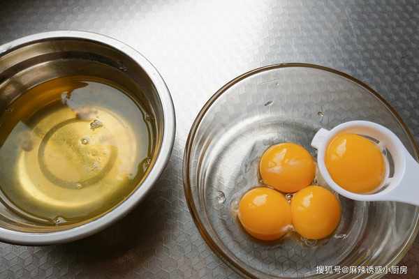 1、取出四隻常溫雞蛋,蛋清和蛋黃分離,隻用蛋黃。