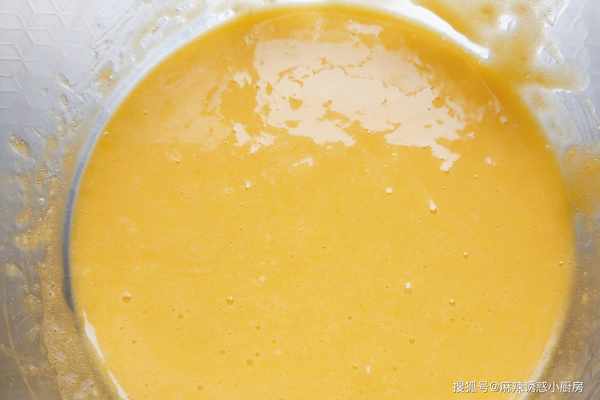 4、把拌好的蛋黃糊裝進裱花袋,沒有裱花袋可以用厚的保鮮袋代替。