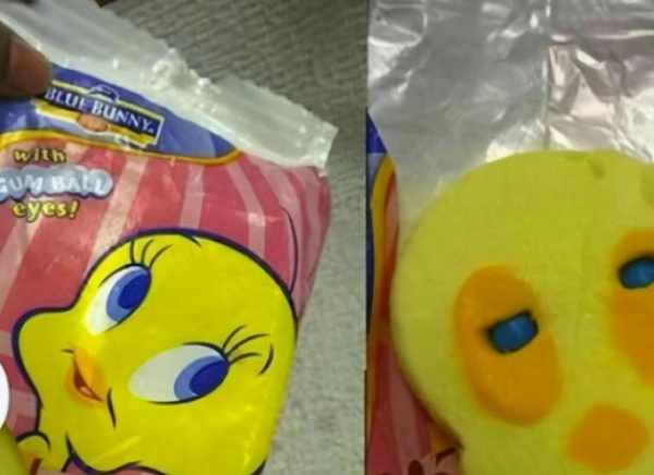 小黃鴨雪糕,這是一個動畫片裡面的動物造型,外包裝上的小鴨子有著長長的睫毛,眼睛靈動可愛,忍不住想要買上一塊這樣的雪糕,拿出來的時候整個人懵瞭,和圖片上的完全不一樣,雖然也是黃色的鴨子,但是這隻鴨子怎麼成瞭”鬥雞眼“。