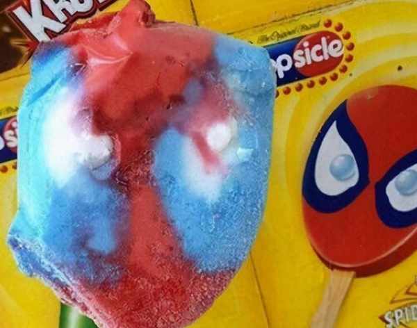 蜘蛛俠雪糕,有很多男孩子特別喜歡蜘蛛俠,在傢裡面會買許多蜘蛛俠的玩具,甚至還會買一些蜘蛛俠的衣服,沒想到雪糕也推出瞭蜘蛛俠款,外包裝上的蜘蛛俠有模有樣,打開之後看到裡面的實物,這個是什麼?需要靠眼力才能判斷出來。