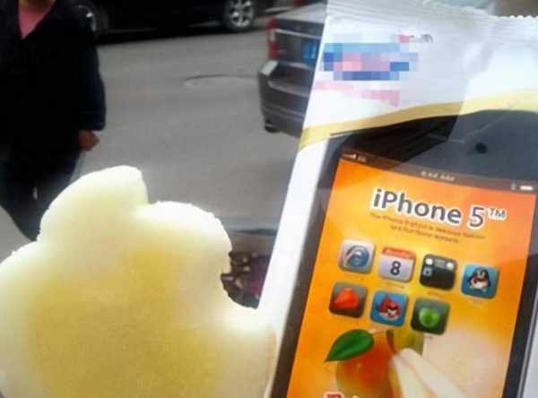 Iphone版雪糕,蘋果手機比較火,沒想到雪糕也有蘋果雪糕,這個包裝上面寫著Iphon5,圖片上畫瞭一個梨的樣子,雪糕拿出來,不知道是蘋果,還是梨,這不是在騙人嗎?完全與圖片不符。