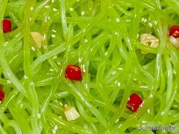 2、萵筍削掉外皮,清洗幹凈後刨成絲,放入一點食鹽抓拌均勻醃制半個小時,醃制出水後清洗幹凈擠幹水分裝入碗中。