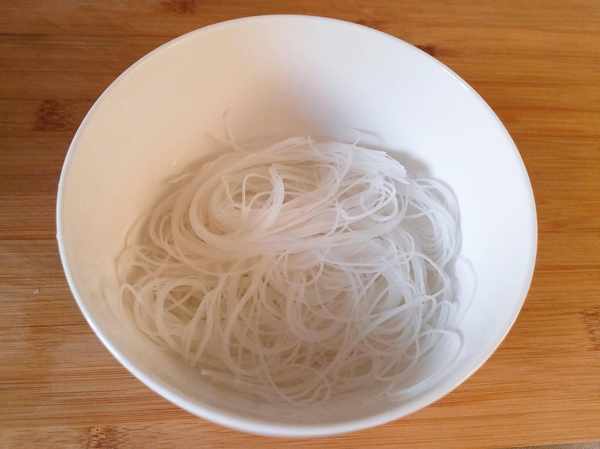 1,先把粉絲用水泡開。