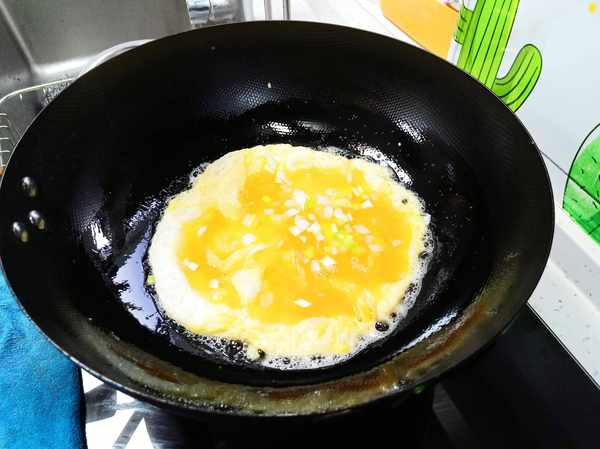 8,再放韭菜,放鹽和味精。