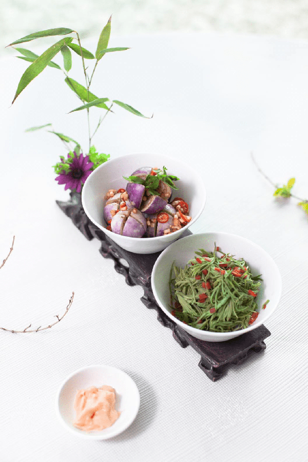 ▲拌野茄子和拌沙松尖(朱墨 攝)