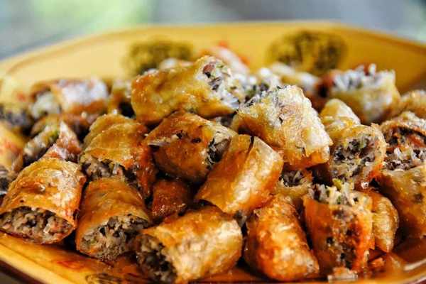 春卷也是一個選擇。雲南的春卷做法是從民國時期傳下來的,自成一派。董超宇告訴我們,特別的地方是制皮,用雲南當季的兩熟面粉,加上土雞蛋,一邊攪拌一邊打成糊狀,在平底鍋裡攤成蛋皮,一張圓形的蛋皮要分成六個春卷皮,這樣的春卷皮很是松香。春卷的餡料通常是用甜筍、香椿、香菇和韭菜拌成,都是春天的時新山鮮,一定要加上甜醬油,才能形成雲南特有的鮮咸回甜的味道。