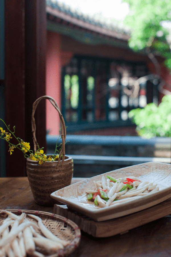 春天裡鮮美的蔬菜首推草芽。草芽是一種水生植物,生長習性很特殊,離開水就會發綠變老不能吃,它的外形很像縮微版的象牙,所以也叫象牙菜。草芽是建水獨有的蔬菜,王黔生告訴我們,到瞭紅河州,過橋米線裡就能看到草芽瞭。草芽是王黔生愛用的一種食材,他給周恩來總理做菜,用草芽炒雞絲,這一道菜後來還用在招待印度總理夫婦的宴會上。“印度總理夫婦來中國,菜單上有一道松茸,那時候松茸已經賣到1000塊錢一斤,太貴瞭。負責接待的同志斟酌瞭一下,覺得如果是招待日本客人就做這個,他們喜歡松茸,其他國傢的人不一定認識,我們就換成瞭草芽炒雞絲。結果吃得印度總理夫人一直在贊嘆。”王黔生說。