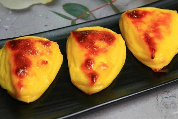 步驟5:將之前沒用的蛋液攪拌均勻,刷到做好的牛奶塊上,然後放入烤盤,上下180-200度,烤20分鐘即可出鍋食用。