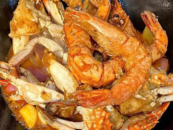做法:1、蝦蟹處理幹凈,蝦去腳、開個背,然後兩面蘸點生粉,蟹的切口處也蘸生粉,粉不要太厚哈