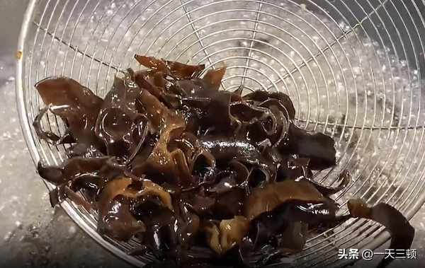 鍋中燒水,倒入黑木耳,水開後焯水1分鐘左右,撈