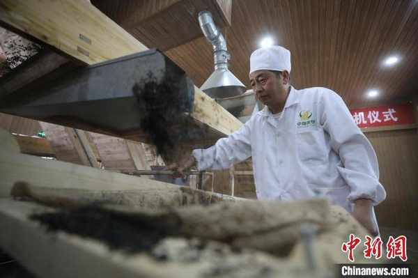 圖為茶博會期間貴州湄潭紅茶木質生產線開機生產。 瞿宏倫 攝