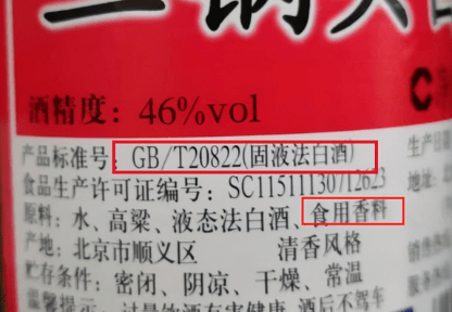 我國白酒有十多種執行標註,如果要都記下來估計也不顯示,但是劣質的酒精酒隻有兩個標準,大傢記住也比較簡單,挑選白酒時看到執行標註為20821及20822就要謹慎選購瞭,這兩種就是酒精配制酒,不是純糧食釀造的。