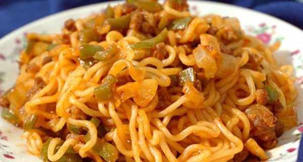 茄汁牛肉炒方便面:煮過的方便面放入熱水中泡開抖散,控幹水分。熱鍋放入適量食用油,放入大蒜碎粒,倒入牛肉碎,翻炒至變色。倒入青椒。芹菜碎粒,翻炒至斷生,=。放入番茄沙司,快速翻炒均勻。加入清水,大火煮沸後轉小火至湯汁濃稠。倒入方便面,翻炒均勻,讓面條均勻地裹上醬汁。繼續翻炒均勻就可以瞭。