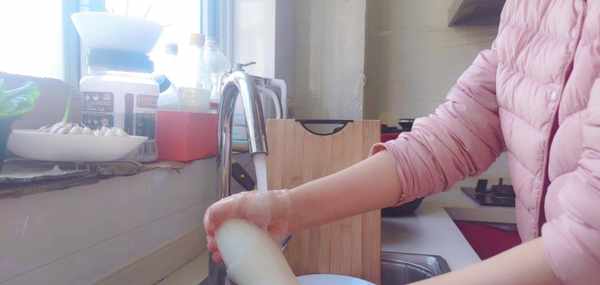 第一步:先把雞塊和大蒜清洗幹凈,把白蘿卜也去皮清洗幹凈備用。