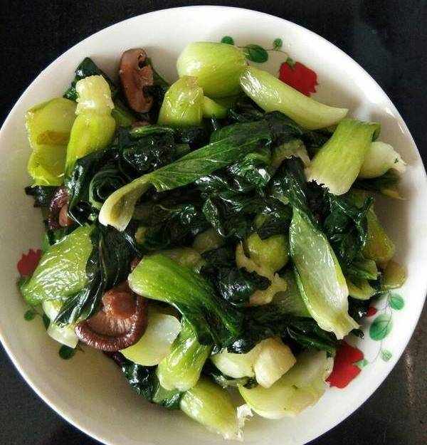 香菇青菜:制作原料有青菜、香菇、油、鹽等。香菇盛出後,用筷子整齊地擺放在青菜上,最後將鍋內的汁淋在菜上即可,香菇素有山珍之王之稱,是高蛋白、低脂肪的營養保健食品,老人小孩均可使用!