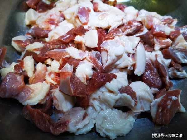 1、買羊肉的時候,告訴店老板,我們需要烤著吃,老板自然就懂給你割什麼肉,羊腿肉比較合適,最好肥瘦搭配,前面咱們說過瞭,肥肉油潤鮮香,可以增加不少風味,把羊肉處理幹凈,改刀切成小塊。