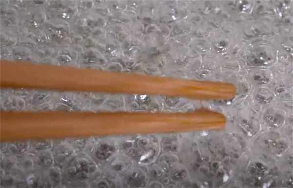 3.另外起鍋咱們熬糖漿,這是80g的白糖,40g的清水大火煮開,這個時候不要動,我們直接把鍋子晃勻就行瞭,如果用鏟子來回翻動的話,這個白糖容易反沙,現在這個糖已經全部融化瞭,咱們轉小火開始熬糖漿,給大傢看一下這個程度,筷子插進去能扯出來細絲就行瞭,特別的黏。