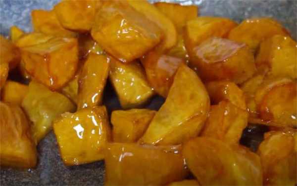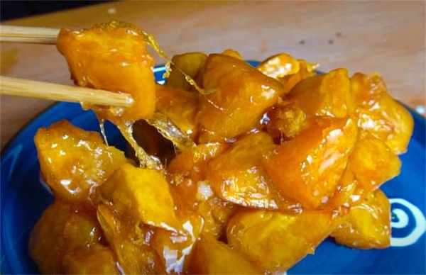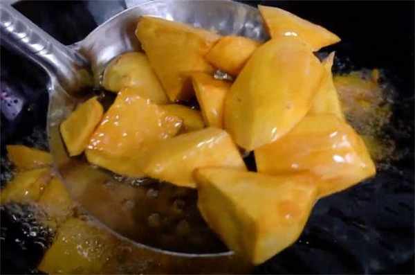 6.喜歡吃甜口的朋友一定要試試我們這個拔絲地瓜,做這個拔絲地瓜的方法很簡單,最主要的就是把這個糖稀給熬好瞭,其他的步驟就非常方便瞭。