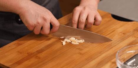 大蒜切碎、小米辣切碎、小蔥切碎、紅、黃彩椒去籽切絲備用。