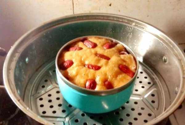 好的面糊會開始冒小泡泡說明開始發酵瞭。用保鮮膜封上,在溫暖的地方發酵60~90分鐘,這一不是非常關鍵的,然後在鍋裡加水燒開後,把裝有面糊的碗放到蒸鍋上,用大火蒸15分鐘左右即可,蒸好後不要馬上開蓋,燜3分鐘左右再取出。如果不喜歡泡打粉的就不用試瞭,如果想發得更好,泡打粉的量還要加大,但也不能太多,太多會發苦的。