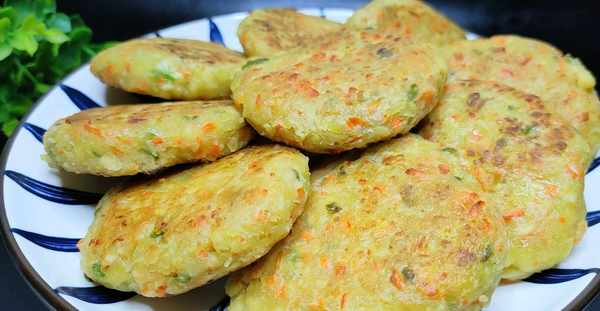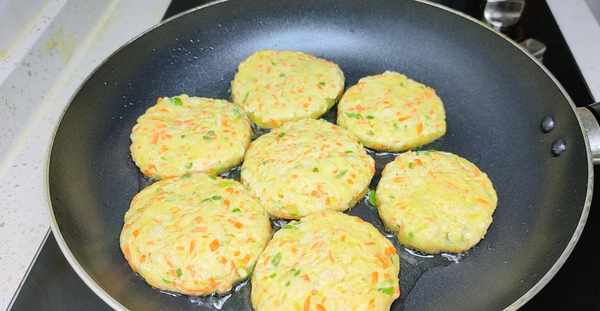 下面準備一個平底鍋,加入一點食用油,接著把餅坯一個一個的放入鍋裡面,下入的時候盡量分開一些,以防粘連在一起,下入之後先輕輕的晃動一下鍋,使其受熱均勻,一面煎制定型金黃後,在給它翻一個面繼續煎,在這裡註意一下,在煎這個小餅的時候,全程要使用中小火慢慢的煎,不要開啟大火,以防煎糊,經過五分鐘的煎制,現在這個小餅金黃金黃的就已經很有食欲瞭,煎好之後就可以關火瞭,下面裝入盤中就可以美美的享用瞭,這麼一道土豆雞肉餅就做好瞭,這樣做出來的小餅外酥裡嫩,好吃營養又美味,在食材搭配方面也是很豐富,在搭配一杯牛奶簡直太完美,做法也是簡單詳細,喜歡就收藏起來試一試。