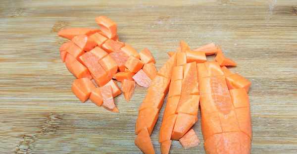 下面準備一點配菜,土豆來兩個,先切成厚片,大概有一厘米的厚度就可以瞭,在切成長條,最後在切成小塊,切的也不要太大,與骰子一樣的大小就可以瞭,切好之後放入盤子裡面,胡蘿卜在來一根,去皮之後先切成薄片,最後在切成胡蘿卜丁,切好之後與土豆放入一起。青椒在來一根,先切去根蒂不要,在從中間切一刀,給它切成長條,最後在切成青椒丁,切好之後放入一個盤子裡面,小蔥在來半根,切成蔥花,生薑一塊,先切成薑片,最後在切成薑末,切好之後一起放入盤子裡面。