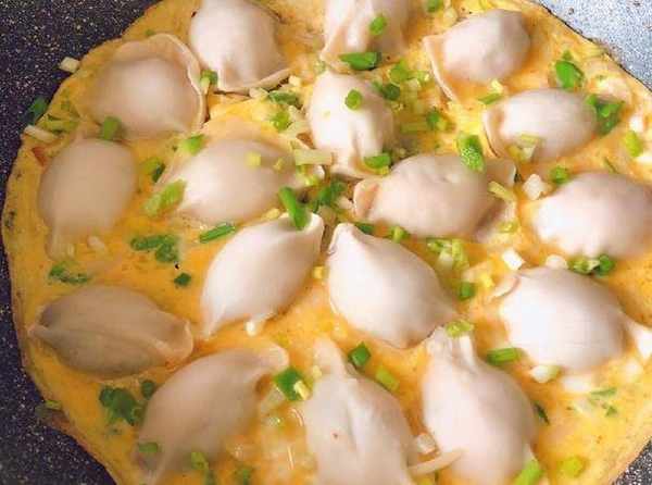 第二個要教給大傢的就是雞蛋餃,雞蛋餃不是大傢說的那種將雞蛋皮做成餃子皮的那種,而是像圖片上這樣先將餃子包好的餃子放在煎鍋中,放入油,然後再加兩個雞蛋攪拌均勻,直接倒在餃子上面,他們會連在一起,然後再加入適量的水以後雞蛋液傢屬方面就可以做好瞭,這個方法做起來也是非常的簡單,味道不僅香,而且吃起來也是非常的鮮嫩。這種方法當作晚餐或者當做一個菜,也是非常的合適。