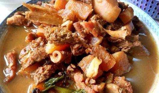 蘿卜燉牛肉,我發現蘿卜是萬能的任何肉配上蘿卜來燉都非常好吃,能吃出來大鍋燉的香味。這道菜是最下飯的,來一碗米飯澆一點燉肉的菜湯美極瞭!另外菜品還有:番茄蛋湯、燉羊肉、炒小青菜、炒綠豆芽、炒河蝦、涼拌素牛肉、涼拌蒜泥荊芥,還有一份我愛吃的車厘子呢!這滿滿的一桌子菜,剛好夠我們一群人吃的!但是老媽說好吃,姑姑卻吐槽寒酸!